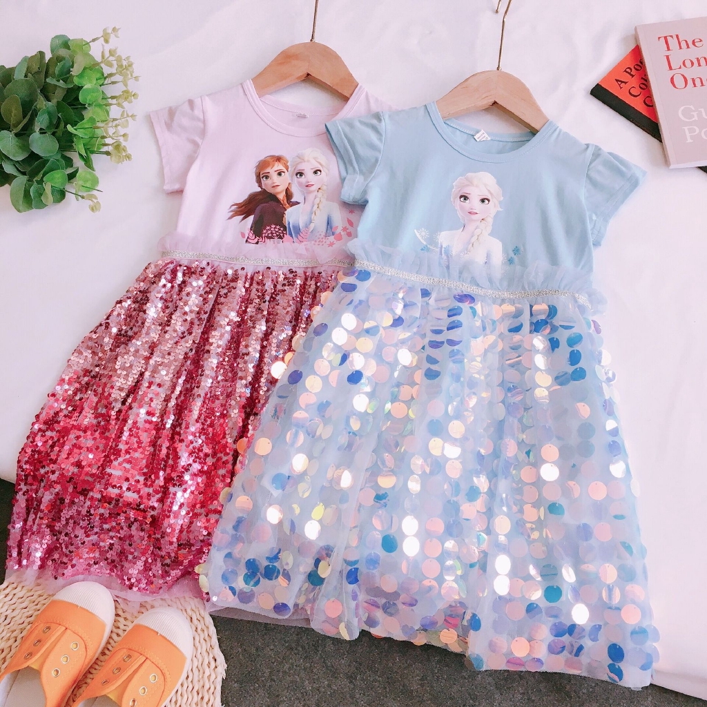 Baju Budak Perempuan Murah Girls 2020 Dress Summer Girls Dress Elsa Short Sleeve Princess Baby Dress Baju Budak Perempuan Girl Dresses Girls Kids Children Pajamas Dress Frozen Elsa Baju Kanak Kanak Perempuan Frozen