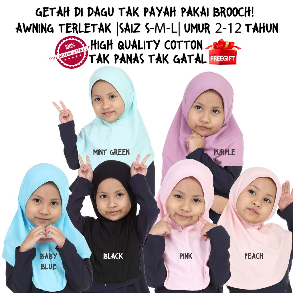 Tudung Budak Instant Sarung Kids Girl Kanakkanak 2 12 Tahun Cotton Berkualiti Tak Panas Awning Cantik Pinless No Brooch Shopee Malaysia