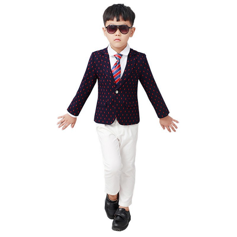 New Boys Dots Printed Blazer Jacket Gentle Boys Suit Coat Kids Wedding Costume Shopee Malaysia