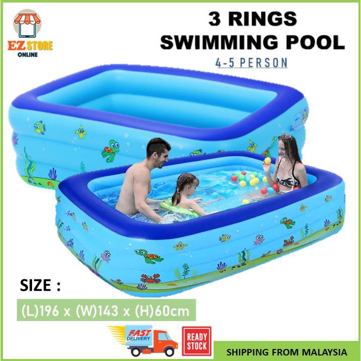 3 Rings 196x143x60 Cm Inflatable Swimming Pool Children Bathtub Kids Swim Pool Kolam Renang Budak Size C Shopee Malaysia